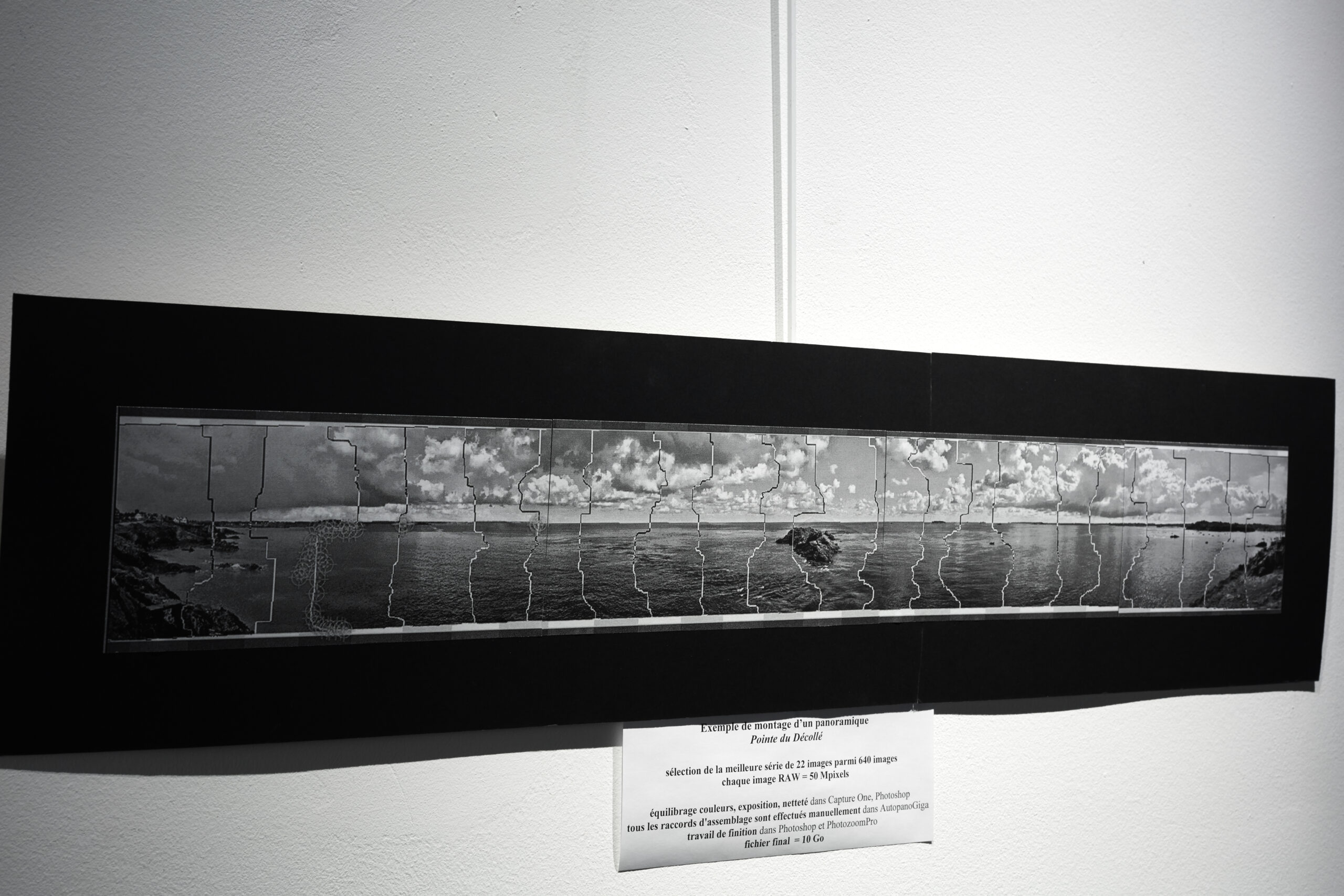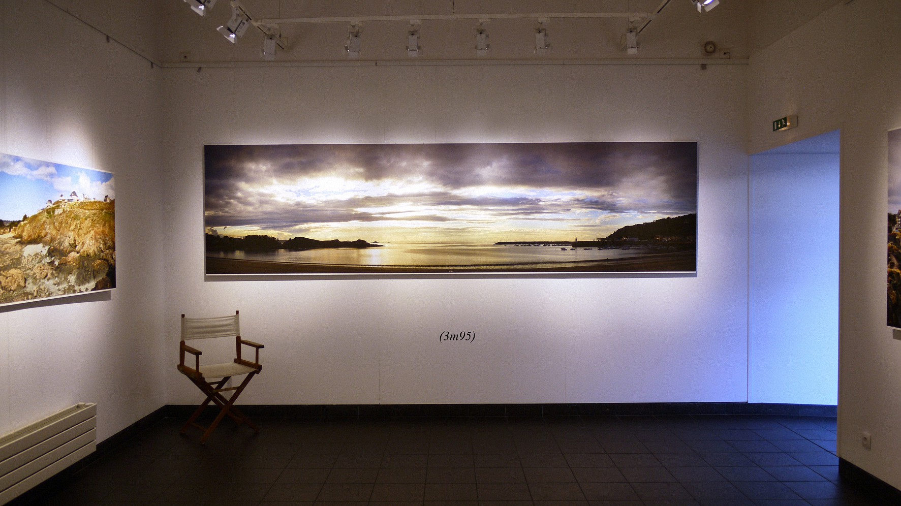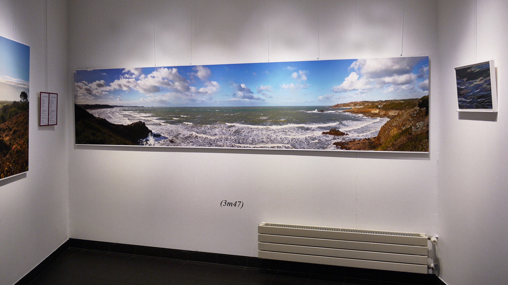 Here below, a few photos of the pictures exposed in the Erquy gallery (I’ve added the picture lengths). Following these, you have a full view of each panoramic, which is followed by the image enlarged divided into three parts which can be slided one after the other, so that you can better ascertain the details.