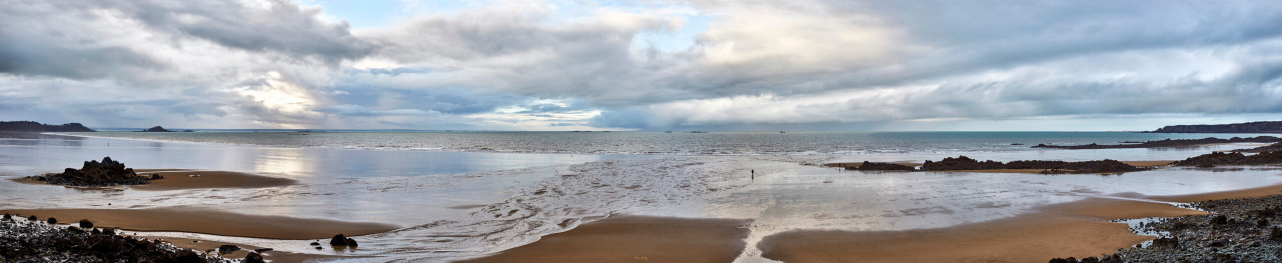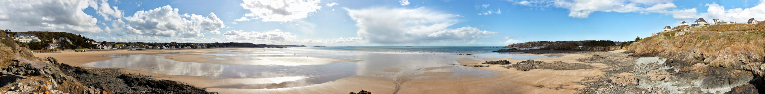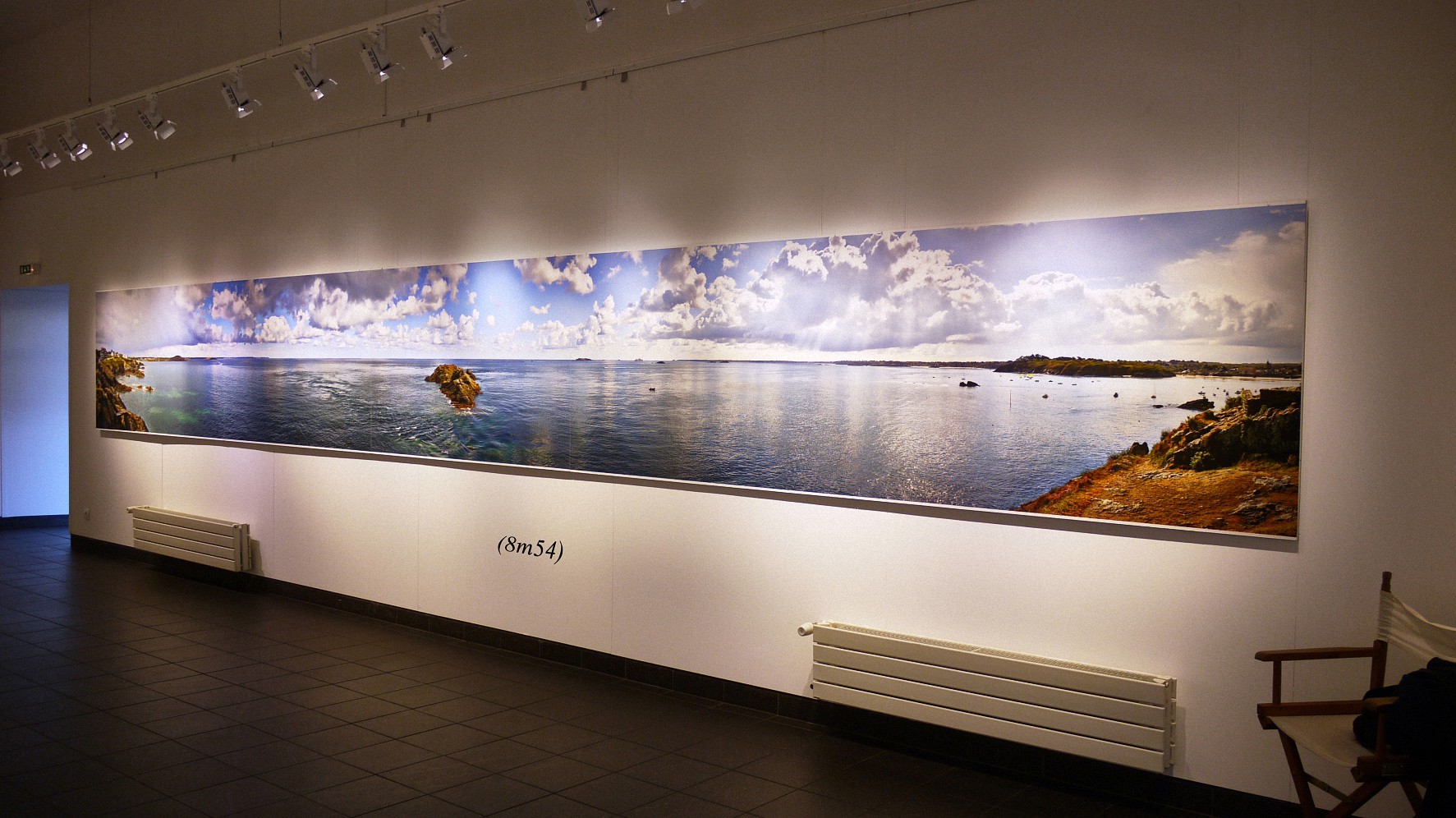 Here below, a few photos of the pictures exposed in the Erquy gallery (I’ve added the picture lengths). Following these, you have a full view of each panoramic, which is followed by the image enlarged divided into three parts which can be slided one after the other, so that you can better ascertain the details.