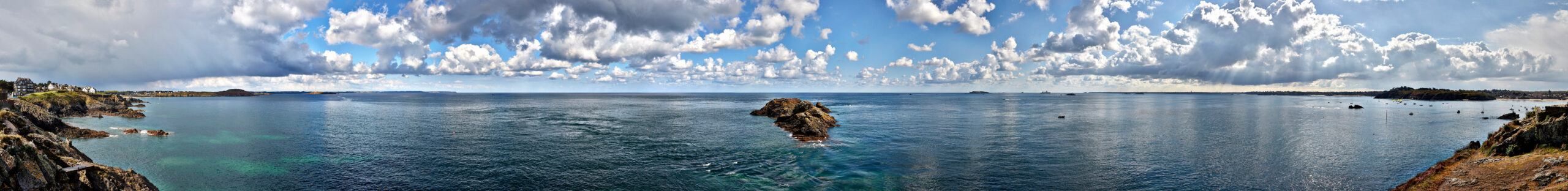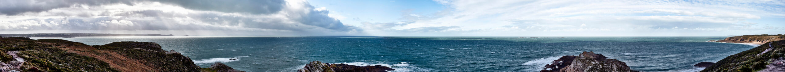 L’annonce il y a quelques années de l’installation d’un parc éolien au large de notre côte m’a profondément attristé. Perdu à jamais, l’horizon, cette ligne d’où naissent ciel et mer, au cœur des riches variations des marées et des lumières qui caractérisent notre côte. Comment préserver la mémoire de cette ligne d’horizon ? La photographie était mon outil, bien sûr. Cependant, je voulais que l’on soit plongé dans une expérience permettant de ressentir l’émotion des instants captés par l’appareil, contrairement aux habituelles photos “artistiques” de la côte, souvent trop spectaculaires, trop irréalistes, peut-être trop fragmentaires. Alors, j’ai décidé d’utiliser la photographie panoramique en haute définition numérique avec un champ allant parfois au-delà des 180°.