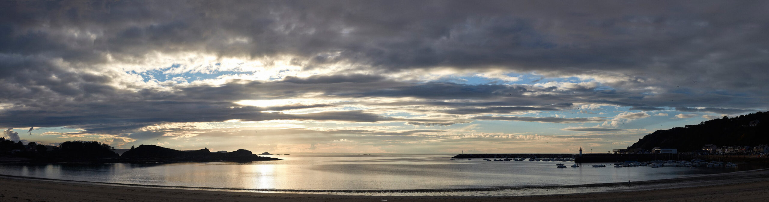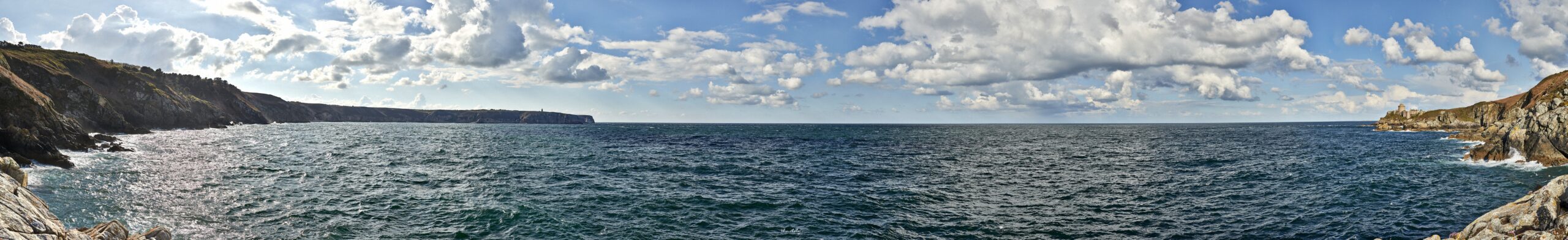 When a few years ago I heard that a wind farm (so-called) was to be constructed off our shore, I was deeply saddened. Lost forever, the horizon, the line from which sky and sea are born, at the heart of the rich variations of tide and light which characterize our coast. How could we preserve a memory of that skyline? Photography was my tool, of course. But I wanted us to be immersed in an aesthetic experience where we could feel the emotion of the instants captured by the camera, as opposed to the usual “artistic” photos of the coast, often too spectacular, too artificial, perhaps too fragmentary. So I decided to use panoramic photography of the highest definition with a field of view sometimes spanning more than 180°.