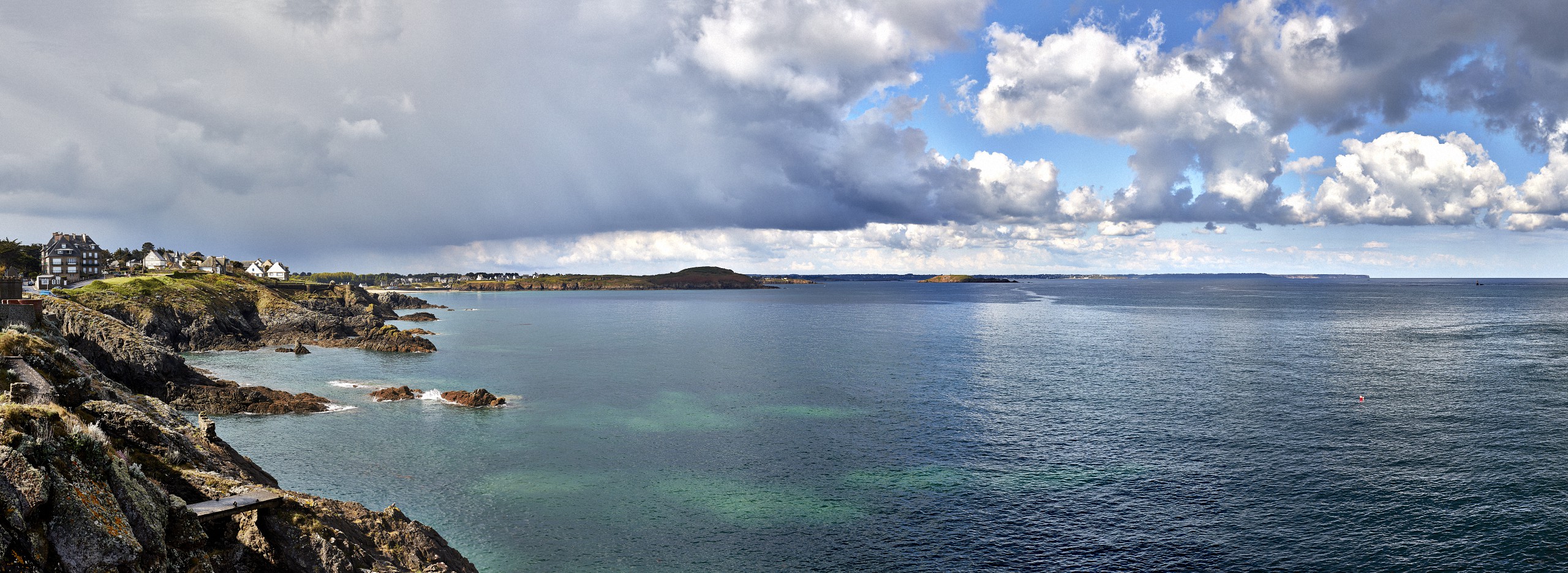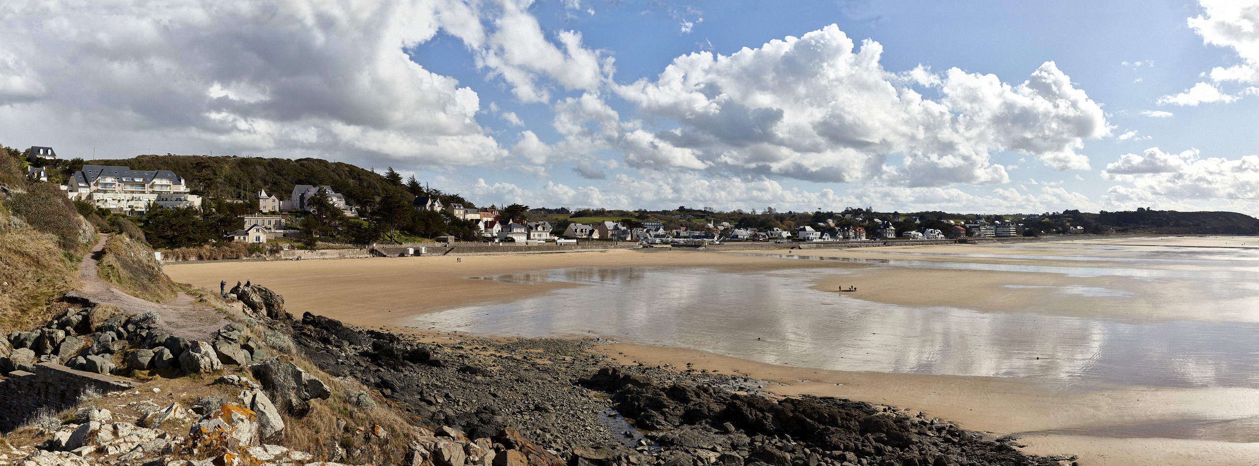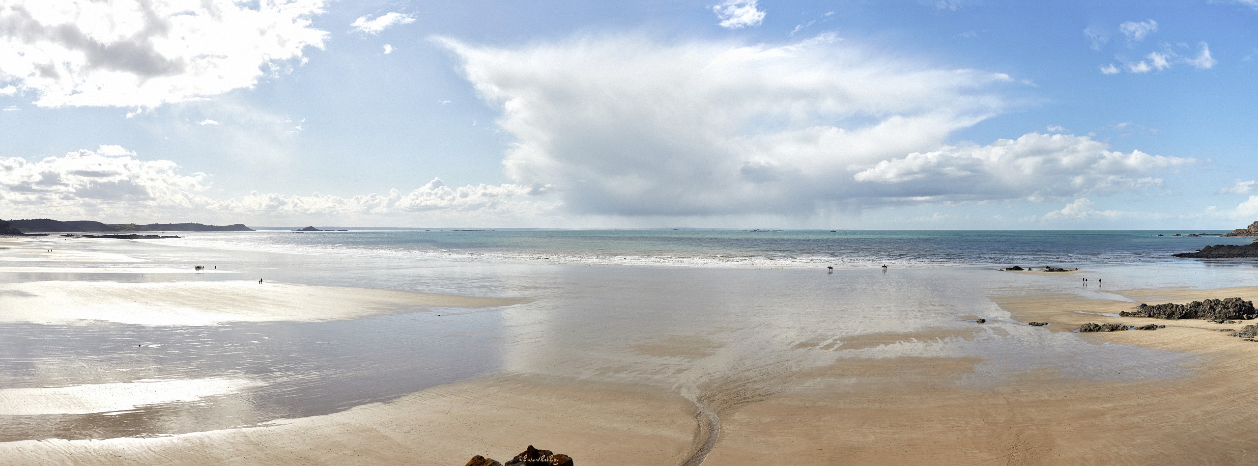 Here below, a few photos of the pictures exposed in the Erquy gallery (I’ve added the picture lengths). Following these, you have a full view of each panoramic, which is followed by the image enlarged divided into three parts which can be slided one after the other, so that you can better ascertain the details.