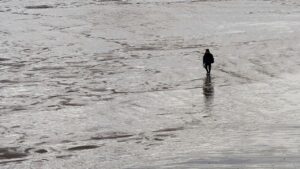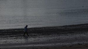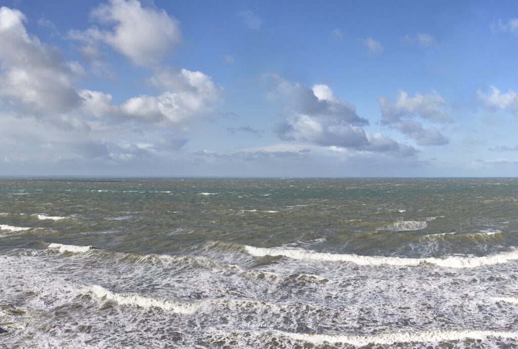 L’annonce il y a quelques années de l’installation d’un parc éolien au large de notre côte m’a profondément attristé. Perdu à jamais, l’horizon, cette ligne d’où naissent ciel et mer, au cœur des riches variations des marées et des lumières qui caractérisent notre côte. Comment préserver la mémoire de cette ligne d’horizon ? La photographie était mon outil, bien sûr. Cependant, je voulais que l’on soit plongé dans une expérience permettant de ressentir l’émotion des instants captés par l’appareil, contrairement aux habituelles photos “artistiques” de la côte, souvent trop spectaculaires, trop irréalistes, peut-être trop fragmentaires. Alors, j’ai décidé d’utiliser la photographie panoramique en haute définition numérique avec un champ allant parfois au-delà des 180°.