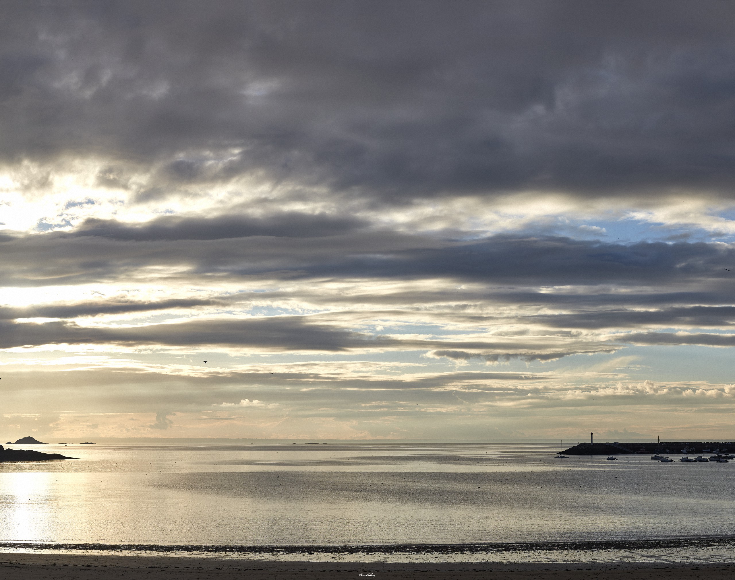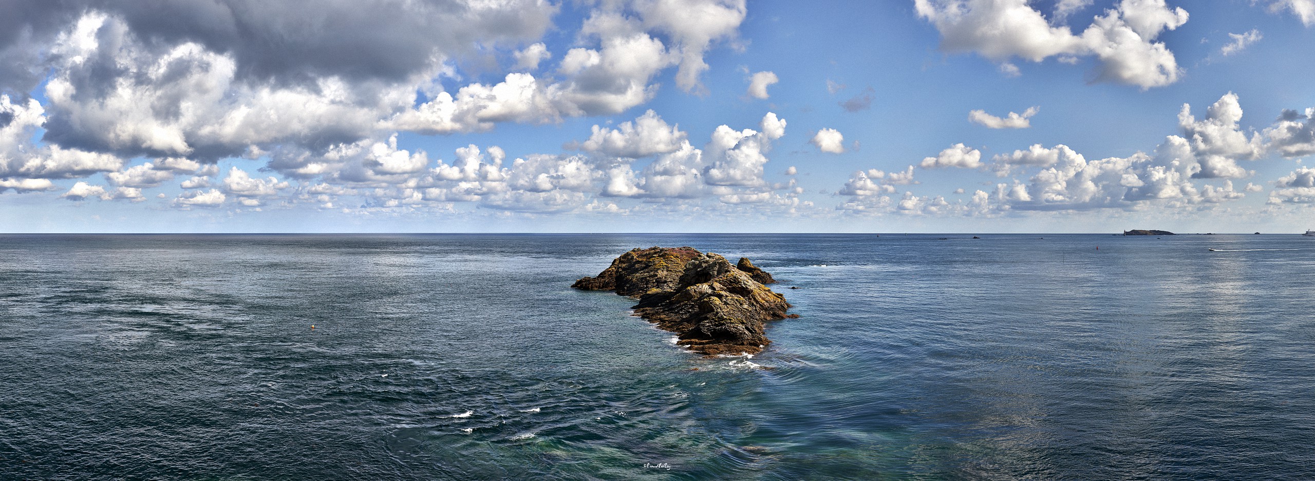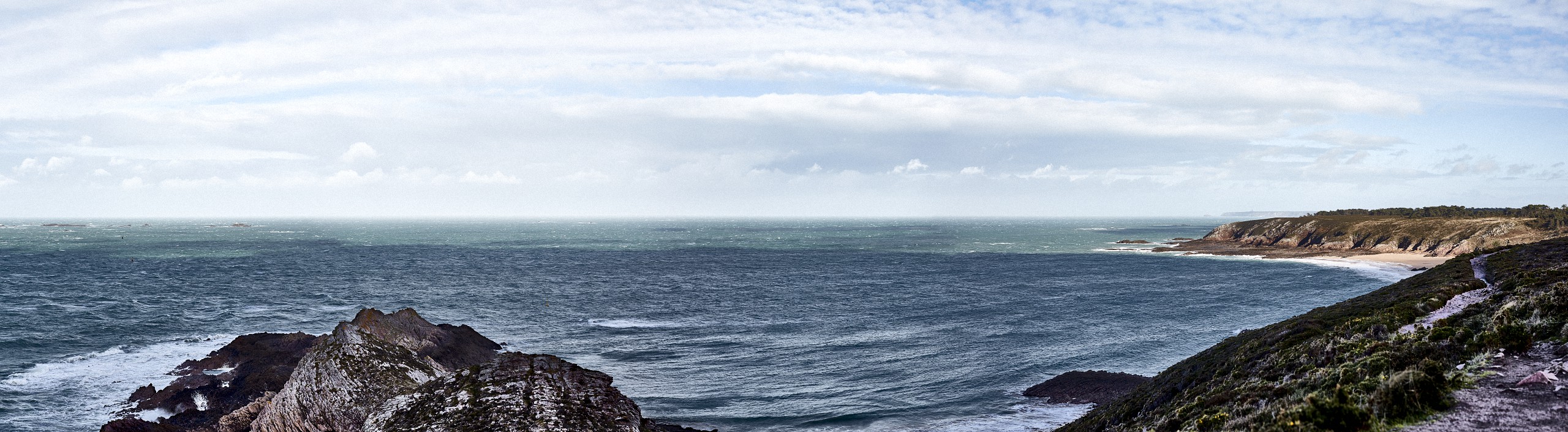 When a few years ago I heard that a wind farm (so-called) was to be constructed off our shore, I was deeply saddened. Lost forever, the horizon, the line from which sky and sea are born, at the heart of the rich variations of tide and light which characterize our coast. How could we preserve a memory of that skyline? Photography was my tool, of course. But I wanted us to be immersed in an aesthetic experience where we could feel the emotion of the instants captured by the camera, as opposed to the usual “artistic” photos of the coast, often too spectacular, too artificial, perhaps too fragmentary. So I decided to use panoramic photography of the highest definition with a field of view sometimes spanning more than 180°.